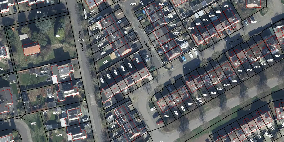 Gebruik de zoekbalk of klik op een perceel voor informatie over de adressen binnen dit perceel.