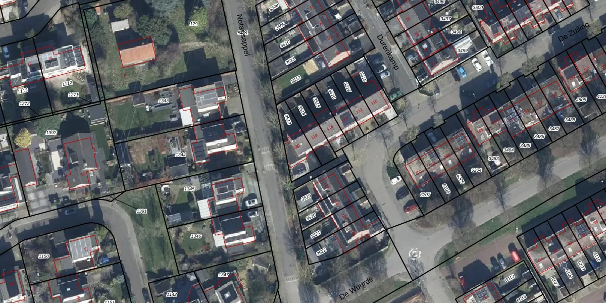 Het perceel waarop De Zuiling 120 staat heeft een oppervlakte van 185 m². Dit is een middelgroot perceel. De perceeloppervlakte wordt geregistreerd door het Kadaster. Gedetailleerde informatie over de maten van dit perceel kunt u vinden in het rapport Kadastrale kaart met maatvoering van De Zuiling 120.