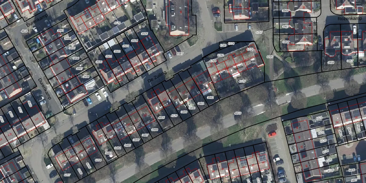 Gebruik de zoekbalk of klik op een perceel voor informatie over de adressen binnen dit perceel.
