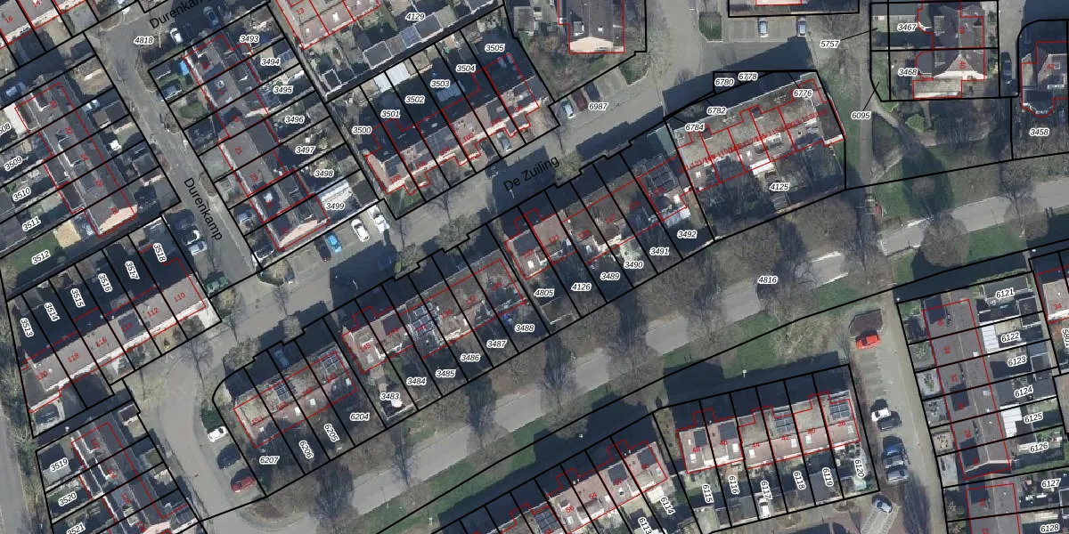 Gebruik de zoekbalk of klik op een perceel voor informatie over de adressen binnen dit perceel.