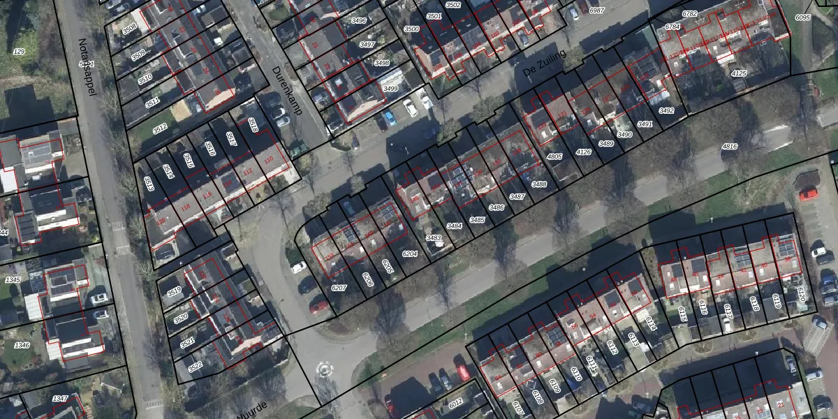 Gebruik de zoekbalk of klik op een perceel voor informatie over de adressen binnen dit perceel.