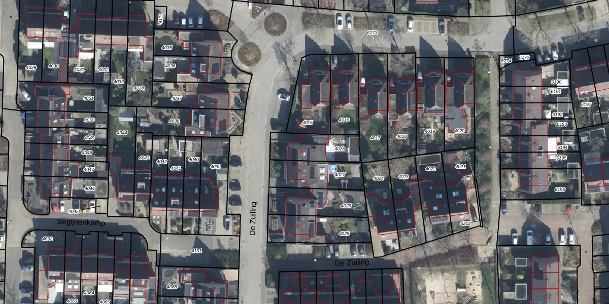De Zuiling 43 is gelegen op kadastraal perceel ELS00K4028. Deze kadastrale aanduiding is uniek en wordt gebruikt door het Kadaster om eigendomsrechten en andere zakelijke rechten vast te leggen. Het perceel maakt onderdeel uit van de kadastrale gemeente Elst.