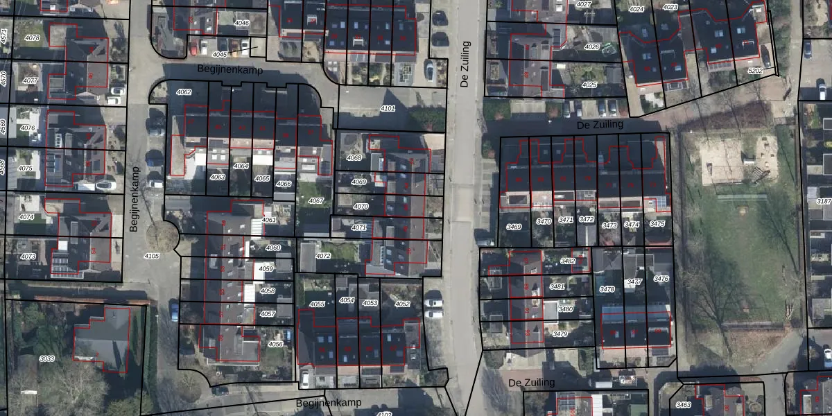 Gebruik de zoekbalk of klik op een perceel voor informatie over de adressen binnen dit perceel.