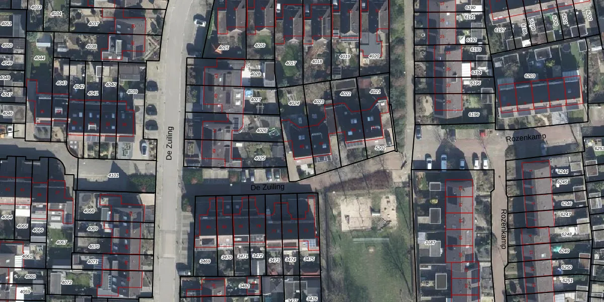 Gebruik de zoekbalk of klik op een perceel voor informatie over de adressen binnen dit perceel.