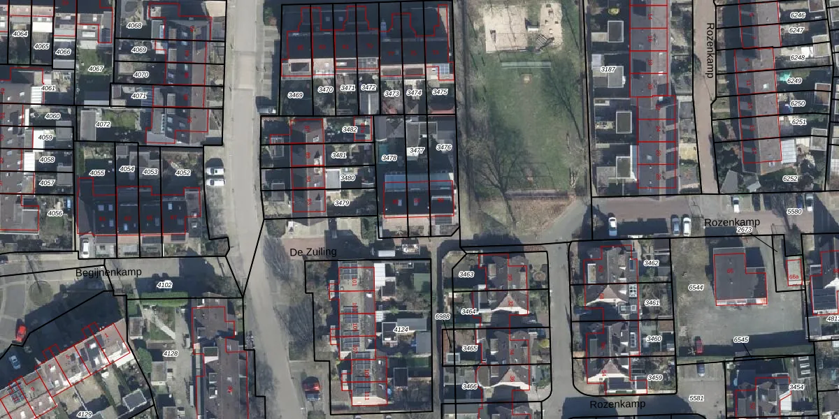 Gebruik de zoekbalk of klik op een perceel voor informatie over de adressen binnen dit perceel.