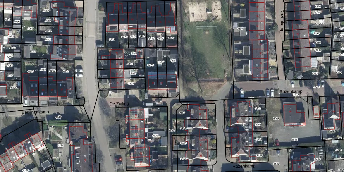Gebruik de zoekbalk of klik op een perceel voor informatie over de adressen binnen dit perceel.