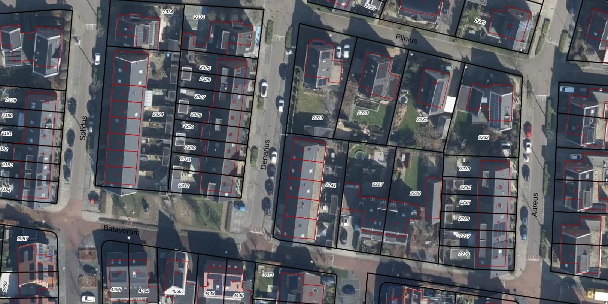 Het perceel waarop Denarius 14 staat heeft een oppervlakte van 745 m². Dit is een groot perceel. De perceeloppervlakte wordt geregistreerd door het Kadaster. Gedetailleerde informatie over de maten van dit perceel kunt u vinden in het rapport Kadastrale kaart met maatvoering van Denarius 14.