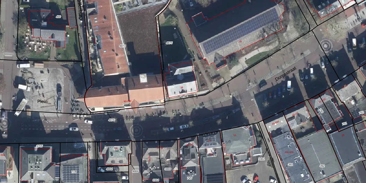 Het perceel waarop Dorpsstraat 38 staat heeft een oppervlakte van 4697 m². Dit is een zeer groot perceel. De perceeloppervlakte wordt geregistreerd door het Kadaster. Gedetailleerde informatie over de maten van dit perceel kunt u vinden in het rapport Kadastrale kaart met maatvoering van Dorpsstraat 38.