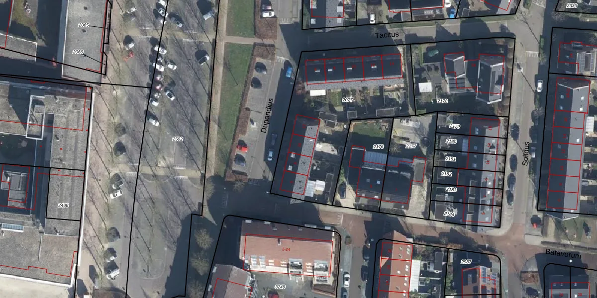 Het perceel waarop Dupondius 10 staat heeft een oppervlakte van 1527 m². Dit is een zeer groot perceel. De perceeloppervlakte wordt geregistreerd door het Kadaster. Gedetailleerde informatie over de maten van dit perceel kunt u vinden in het rapport Kadastrale kaart met maatvoering van Dupondius 10.