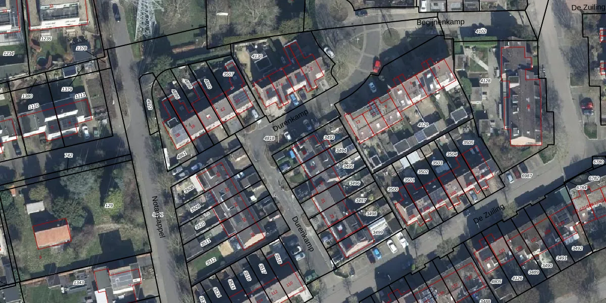 Gebruik de zoekbalk of klik op een perceel voor informatie over de adressen binnen dit perceel.
