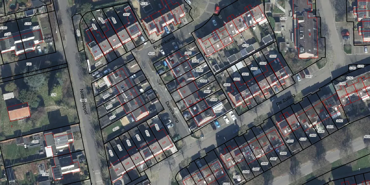 Het perceel waarop Durenkamp 21 staat heeft een oppervlakte van 145 m². Dit is een middelgroot perceel. De perceeloppervlakte wordt geregistreerd door het Kadaster. Gedetailleerde informatie over de maten van dit perceel kunt u vinden in het rapport Kadastrale kaart met maatvoering van Durenkamp 21.