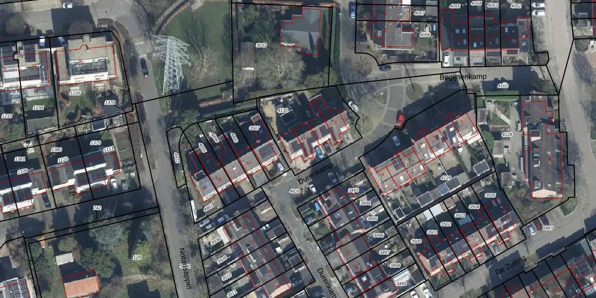 Het perceel waarop Durenkamp 8 staat heeft een oppervlakte van 670 m². Dit is een groot perceel. De perceeloppervlakte wordt geregistreerd door het Kadaster. Gedetailleerde informatie over de maten van dit perceel kunt u vinden in het rapport Kadastrale kaart met maatvoering van Durenkamp 8.