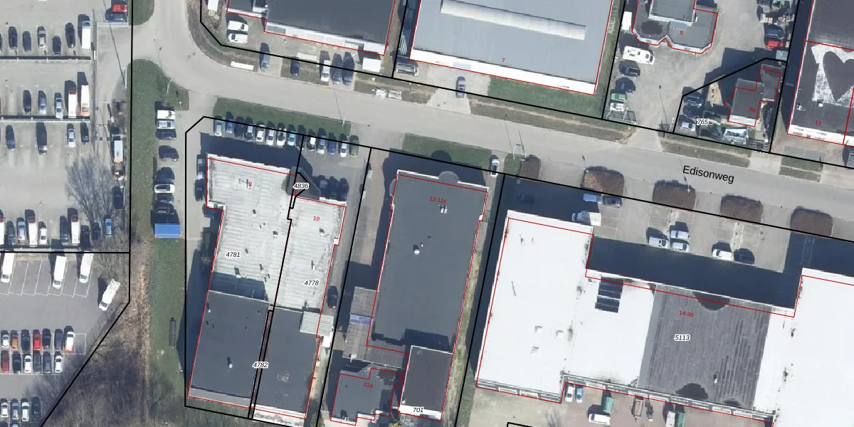 Edisonweg 12 is gelegen op kadastraal perceel ELS00N701. Deze kadastrale aanduiding is uniek en wordt gebruikt door het Kadaster om eigendomsrechten en andere zakelijke rechten vast te leggen. Het perceel maakt onderdeel uit van de kadastrale gemeente Elst.