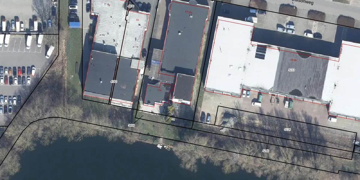 Het perceel waarop Edisonweg 12-b staat heeft een oppervlakte van 2150 m². Dit is een zeer groot perceel. De perceeloppervlakte wordt geregistreerd door het Kadaster. Gedetailleerde informatie over de maten van dit perceel kunt u vinden in het rapport Kadastrale kaart met maatvoering van Edisonweg 12-b.