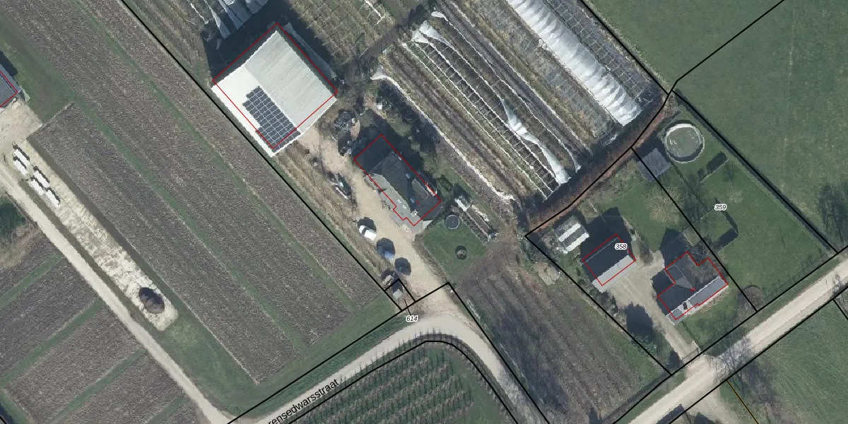 Het adres ligt op het perceel ELS00-M-615, dat zich in de kadastrale gemeente Elst bevindt. De gemiddelde perceeloppervlakte in de kadastrale gemeente Elst is 2925,38 m². Dit perceel is met zijn 2,1 ha dus groter dan gemiddeld. Het grootste perceel in de kadastrale gemeente is 35,2 ha. Het kleinste perceel heeft een oppervlakte van 0 m². Op het perceel bevinden zich geen andere adressen. In de Basisregistratie Kadaster (BRK) werden de grenzen van het perceel geregistreerd op 27-03-2006.