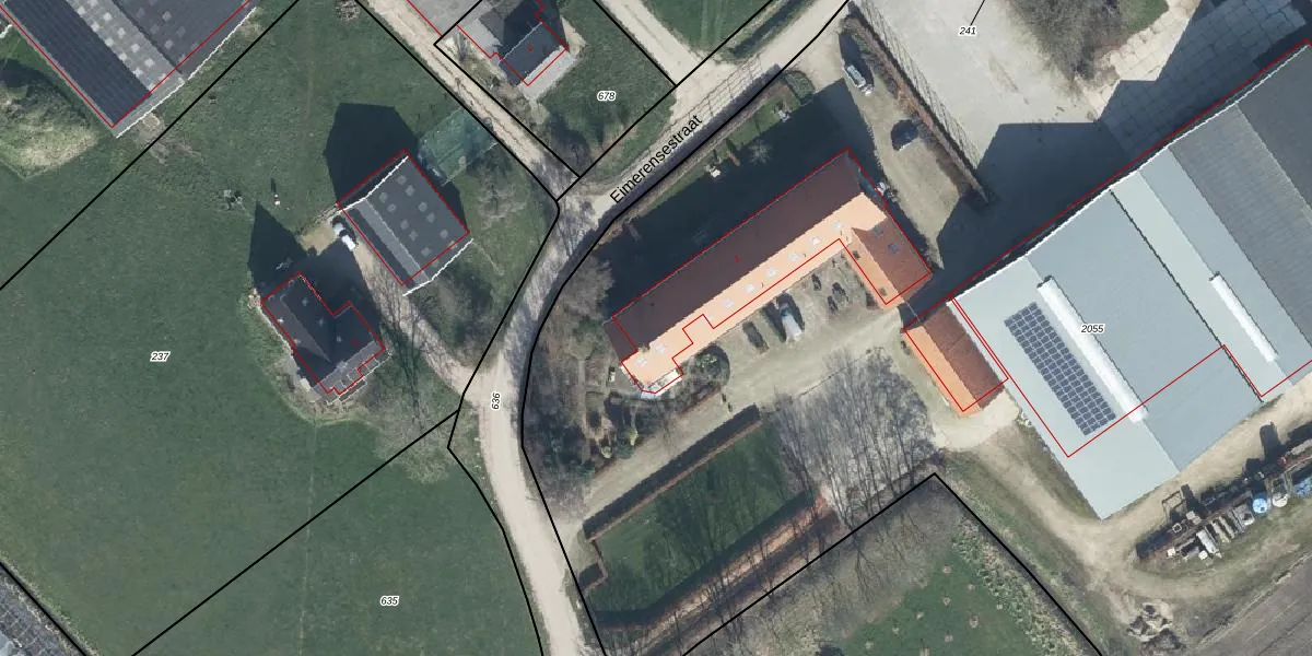 Het perceel waarop Eimerensestraat 1 staat heeft een oppervlakte van 1,5 ha. Dit is een zeer groot perceel. De perceeloppervlakte wordt geregistreerd door het Kadaster. Gedetailleerde informatie over de maten van dit perceel kunt u vinden in het rapport Kadastrale kaart met maatvoering van Eimerensestraat 1.