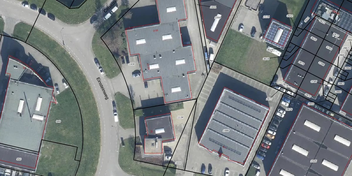 Het perceel waarop Einsteinweg 23 staat heeft een oppervlakte van 3150 m². Dit is een zeer groot perceel. De perceeloppervlakte wordt geregistreerd door het Kadaster. Gedetailleerde informatie over de maten van dit perceel kunt u vinden in het rapport Kadastrale kaart met maatvoering van Einsteinweg 23.