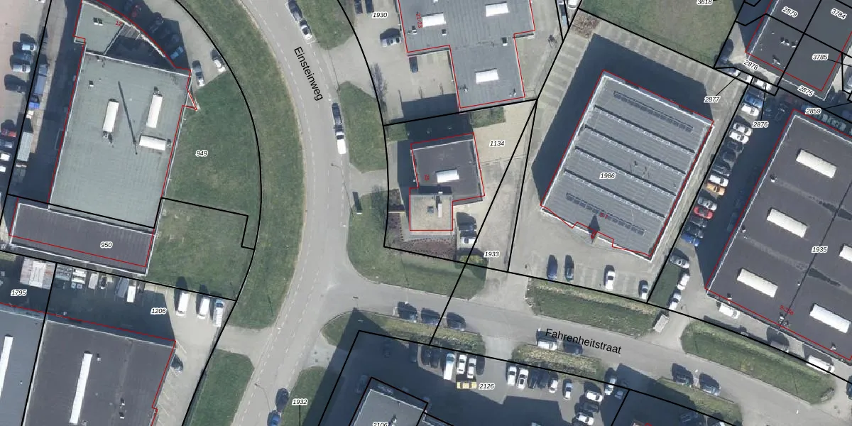 Gebruik de zoekbalk of klik op een perceel voor informatie over de adressen binnen dit perceel.