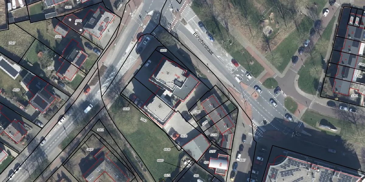 Het perceel waarop Eshofsestraat 2-f staat heeft een oppervlakte van 786 m². Dit is een groot perceel. De perceeloppervlakte wordt geregistreerd door het Kadaster. Gedetailleerde informatie over de maten van dit perceel kunt u vinden in het rapport Kadastrale kaart met maatvoering van Eshofsestraat 2-f.