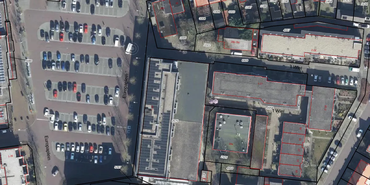 Het perceel waarop Europaplein 9-2eV staat heeft een oppervlakte van 2325 m². Dit is een zeer groot perceel. De perceeloppervlakte wordt geregistreerd door het Kadaster. Gedetailleerde informatie over de maten van dit perceel kunt u vinden in het rapport Kadastrale kaart met maatvoering van Europaplein 9-2eV.