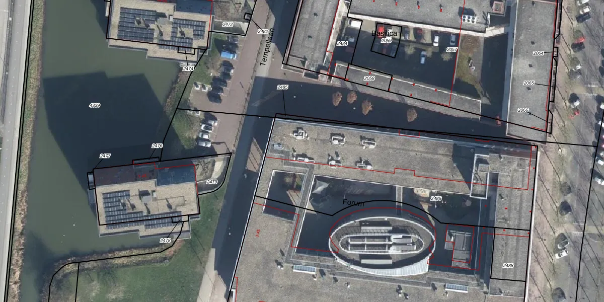 Het perceel waarop Forum 3 staat heeft een oppervlakte van 2469 m². Dit is een zeer groot perceel. De perceeloppervlakte wordt geregistreerd door het Kadaster. Gedetailleerde informatie over de maten van dit perceel kunt u vinden in het rapport Kadastrale kaart met maatvoering van Forum 3.
