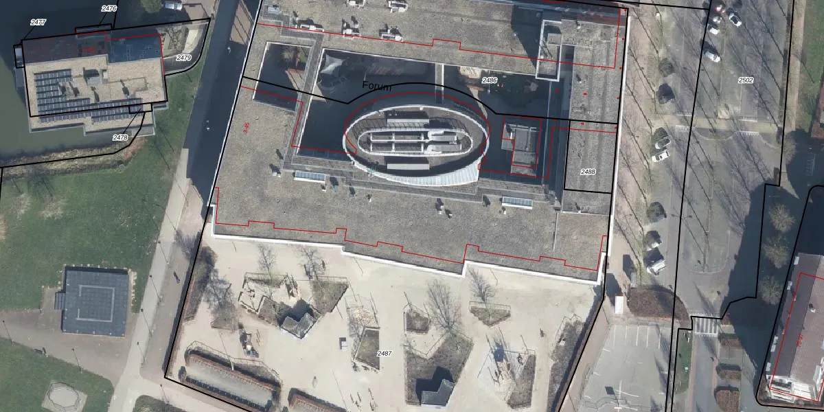 Het perceel waarop Forum 6 staat heeft een oppervlakte van 8103 m². Dit is een zeer groot perceel. De perceeloppervlakte wordt geregistreerd door het Kadaster. Gedetailleerde informatie over de maten van dit perceel kunt u vinden in het rapport Kadastrale kaart met maatvoering van Forum 6.