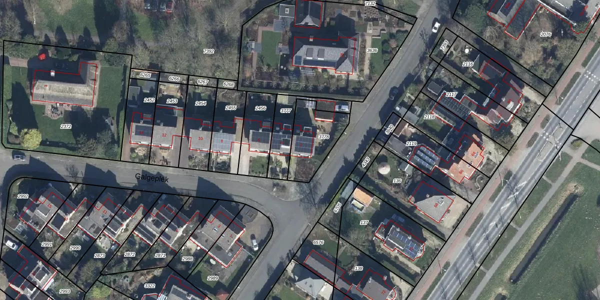 Het perceel waarop Galgeplek 2 staat heeft een oppervlakte van 345 m². Dit is een groot perceel. De perceeloppervlakte wordt geregistreerd door het Kadaster. Gedetailleerde informatie over de maten van dit perceel kunt u vinden in het rapport Kadastrale kaart met maatvoering van Galgeplek 2.