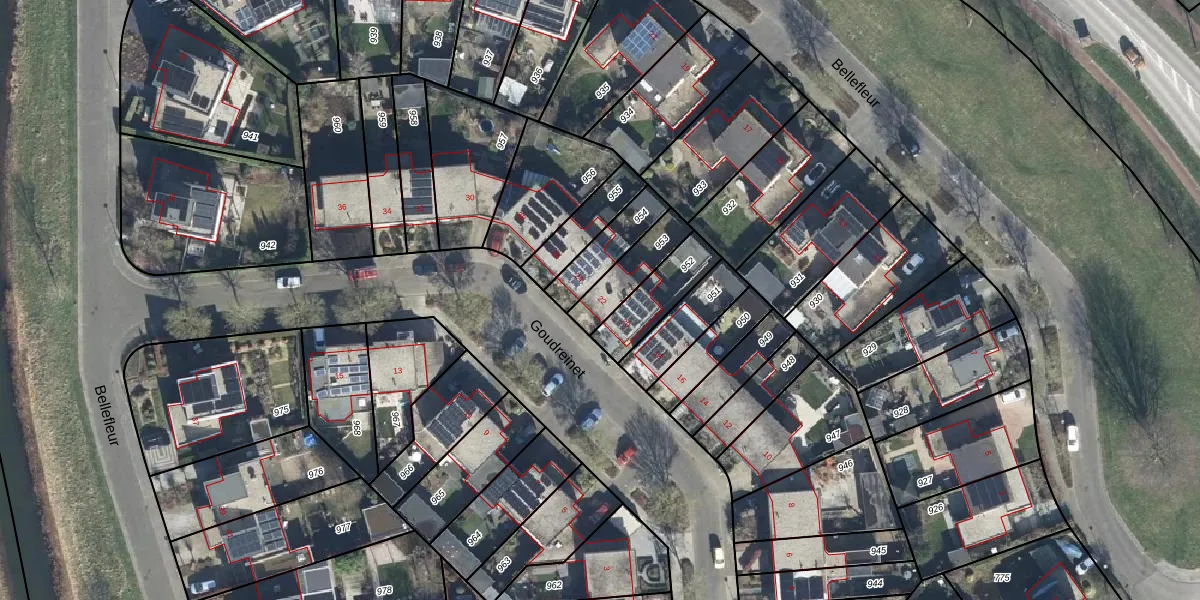 Het perceel waarop Goudreinet 22 staat heeft een oppervlakte van 136 m². Dit is een middelgroot perceel. De perceeloppervlakte wordt geregistreerd door het Kadaster. Gedetailleerde informatie over de maten van dit perceel kunt u vinden in het rapport Kadastrale kaart met maatvoering van Goudreinet 22.