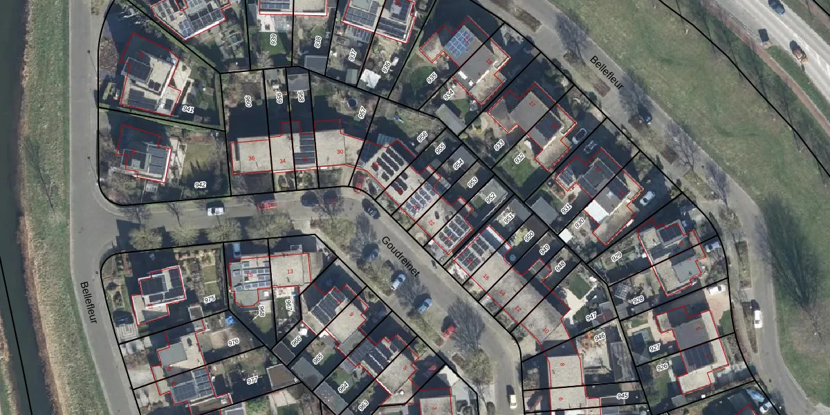Het perceel waarop Goudreinet 24 staat heeft een oppervlakte van 136 m². Dit is een middelgroot perceel. De perceeloppervlakte wordt geregistreerd door het Kadaster. Gedetailleerde informatie over de maten van dit perceel kunt u vinden in het rapport Kadastrale kaart met maatvoering van Goudreinet 24.