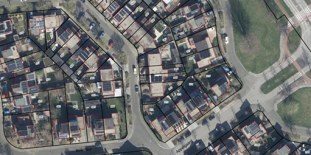 Gebruik de zoekbalk of klik op een perceel voor informatie over de adressen binnen dit perceel.