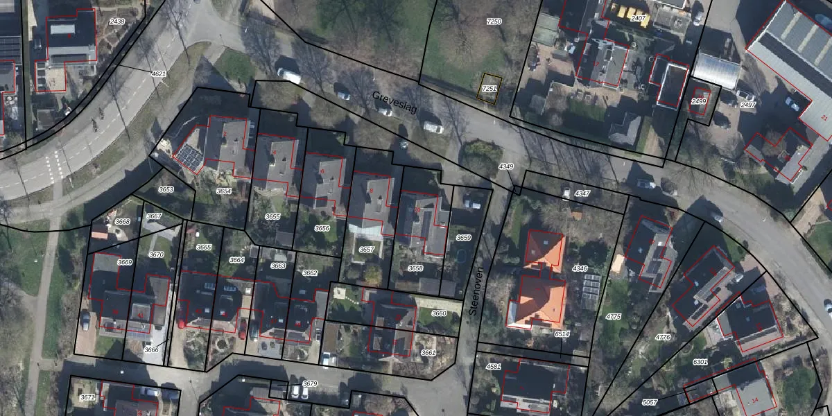 Het perceel waarop Greveslag 10 staat heeft een oppervlakte van 366 m². Dit is een groot perceel. De perceeloppervlakte wordt geregistreerd door het Kadaster. Gedetailleerde informatie over de maten van dit perceel kunt u vinden in het rapport Kadastrale kaart met maatvoering van Greveslag 10.