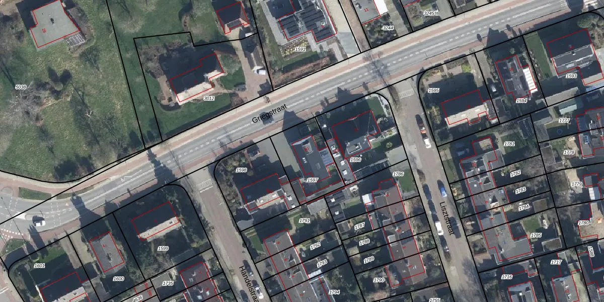 Het perceel waarop Griegstraat 10 staat heeft een oppervlakte van 405 m². Dit is een groot perceel. De perceeloppervlakte wordt geregistreerd door het Kadaster. Gedetailleerde informatie over de maten van dit perceel kunt u vinden in het rapport Kadastrale kaart met maatvoering van Griegstraat 10.
