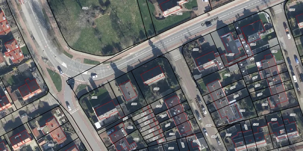 Het perceel waarop Griegstraat 6 staat heeft een oppervlakte van 615 m². Dit is een groot perceel. De perceeloppervlakte wordt geregistreerd door het Kadaster. Gedetailleerde informatie over de maten van dit perceel kunt u vinden in het rapport Kadastrale kaart met maatvoering van Griegstraat 6.