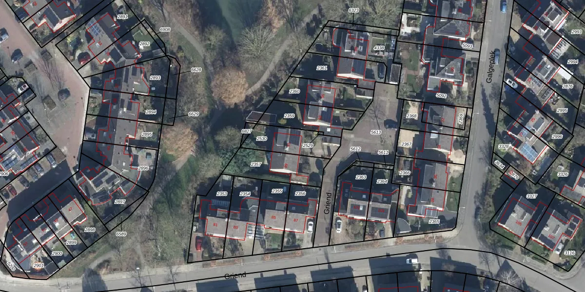 Het perceel waarop Griend 91 staat heeft een oppervlakte van 263 m². Dit is een middelgroot perceel. De perceeloppervlakte wordt geregistreerd door het Kadaster. Gedetailleerde informatie over de maten van dit perceel kunt u vinden in het rapport Kadastrale kaart met maatvoering van Griend 91.