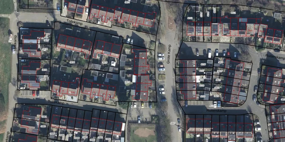 Grote Kamp 6 is gelegen op kadastraal perceel ELS00K3974. Deze kadastrale aanduiding is uniek en wordt gebruikt door het Kadaster om eigendomsrechten en andere zakelijke rechten vast te leggen. Het perceel maakt onderdeel uit van de kadastrale gemeente Elst.