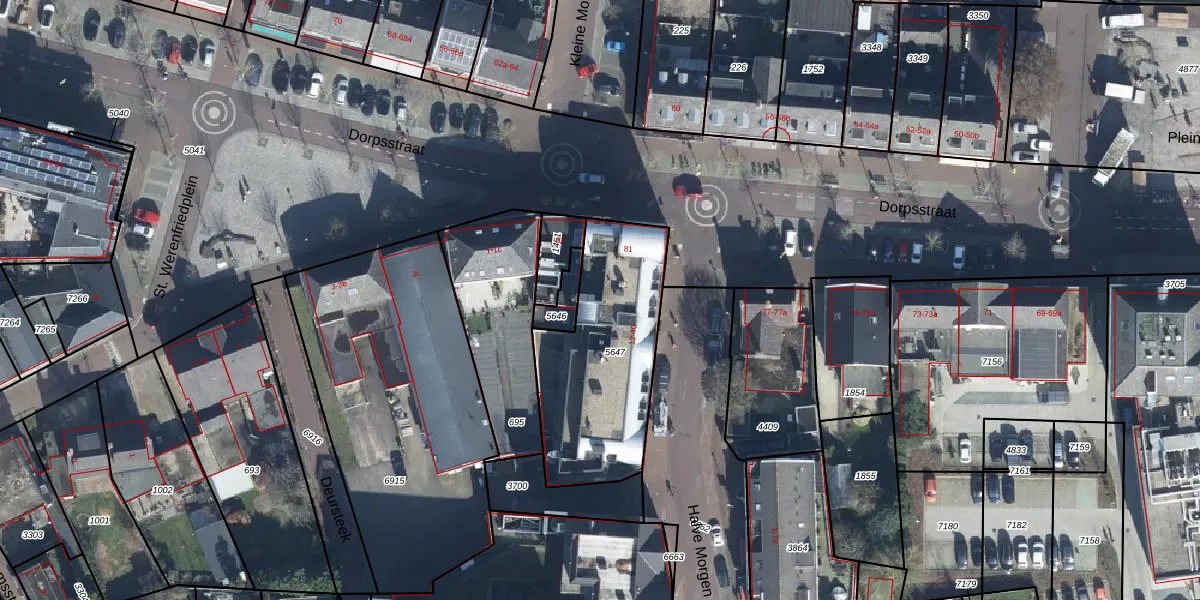 Het adres is gelegen op perceel 5647 in de sectie K en de kadastrale gemeente Elst. De kadastrale aanduiding is aldus ELS00-K-5647. De gemiddelde perceelgrootte in Elst is 2924,12 m². Dit perceel is kleiner: de perceeloppervlakte bedraagt 707 m². Het kleinste perceel in de kadastrale gemeente is 0 m² groot. De grootste perceeloppervlakte is 35,2 ha. Op het perceel liggen in totaal 16 adressen. In de Basisregistratie Kadaster (BRK) werden de grenzen van het perceel geregistreerd op 01-08-2006.