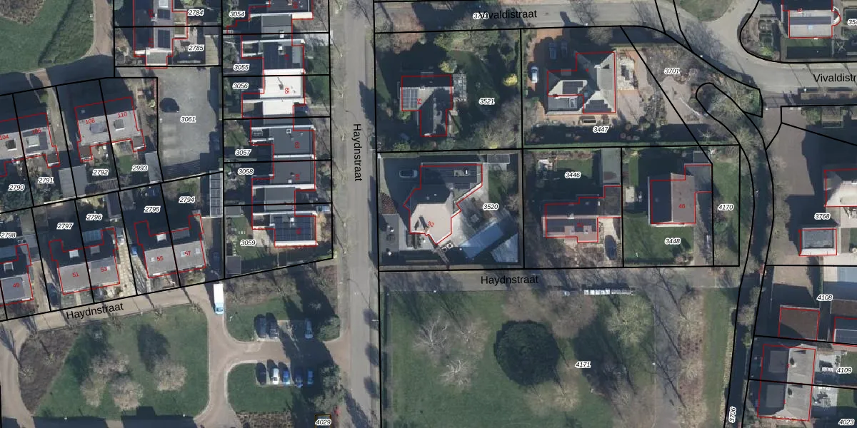 Het perceel waarop Haydnstraat 52 staat heeft een oppervlakte van 947 m². Dit is een groot perceel. De perceeloppervlakte wordt geregistreerd door het Kadaster. Gedetailleerde informatie over de maten van dit perceel kunt u vinden in het rapport Kadastrale kaart met maatvoering van Haydnstraat 52.