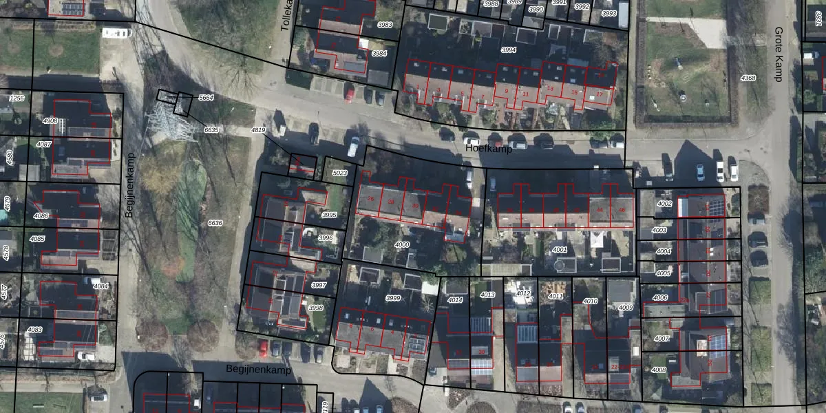 Het perceel waarop Hoefkamp 30 staat heeft een oppervlakte van 872 m². Dit is een groot perceel. De perceeloppervlakte wordt geregistreerd door het Kadaster. Gedetailleerde informatie over de maten van dit perceel kunt u vinden in het rapport Kadastrale kaart met maatvoering van Hoefkamp 30.