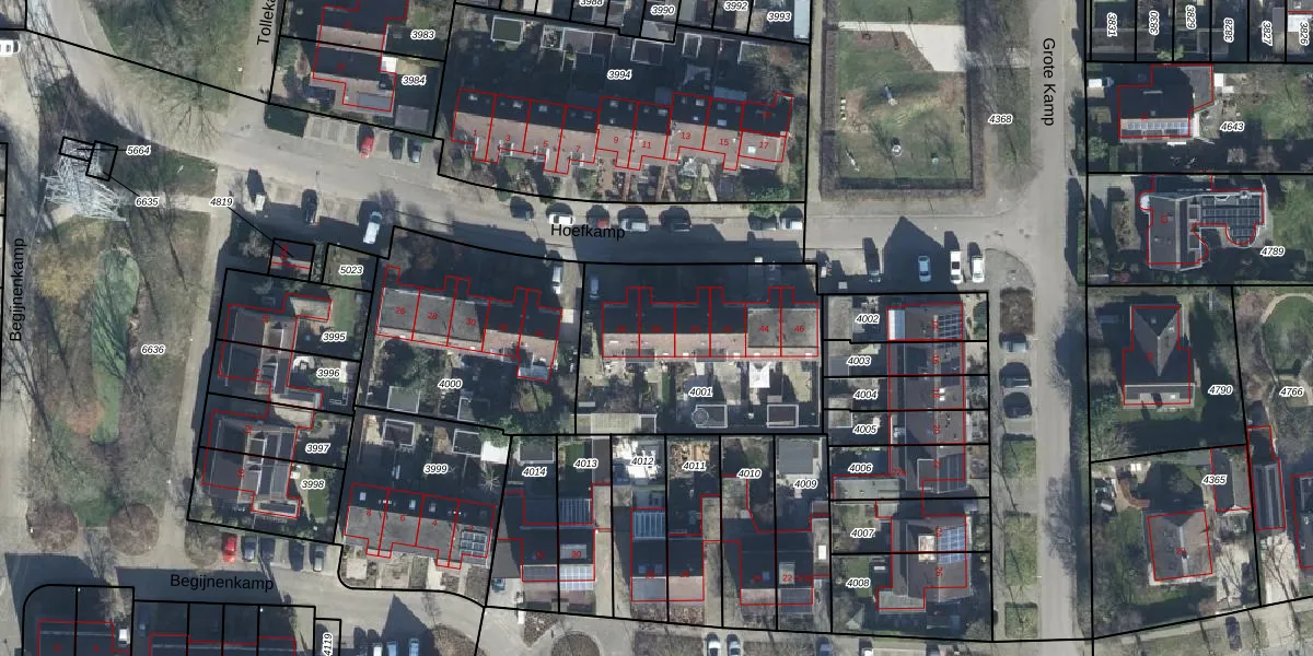 Het perceel waarop Hoefkamp 38 staat heeft een oppervlakte van 959 m². Dit is een groot perceel. De perceeloppervlakte wordt geregistreerd door het Kadaster. Gedetailleerde informatie over de maten van dit perceel kunt u vinden in het rapport Kadastrale kaart met maatvoering van Hoefkamp 38.
