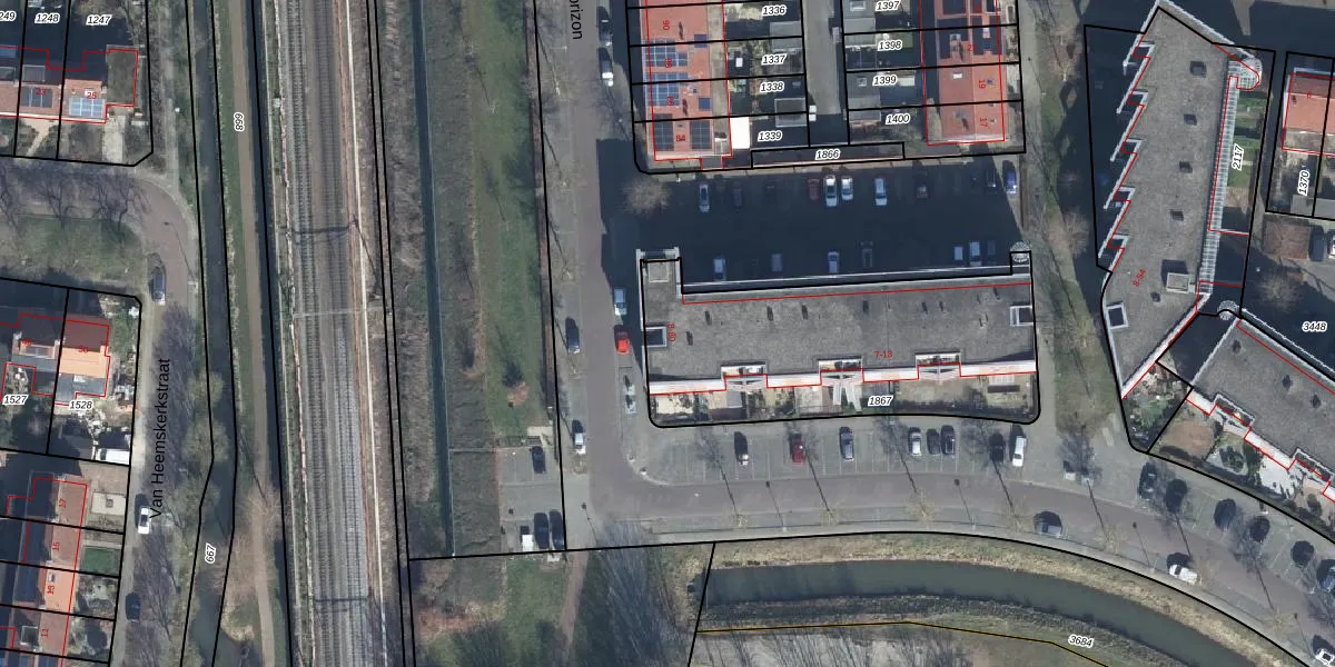 Het perceel waarop Horizon 24 staat heeft een oppervlakte van 1226 m². Dit is een zeer groot perceel. De perceeloppervlakte wordt geregistreerd door het Kadaster. Gedetailleerde informatie over de maten van dit perceel kunt u vinden in het rapport Kadastrale kaart met maatvoering van Horizon 24.
