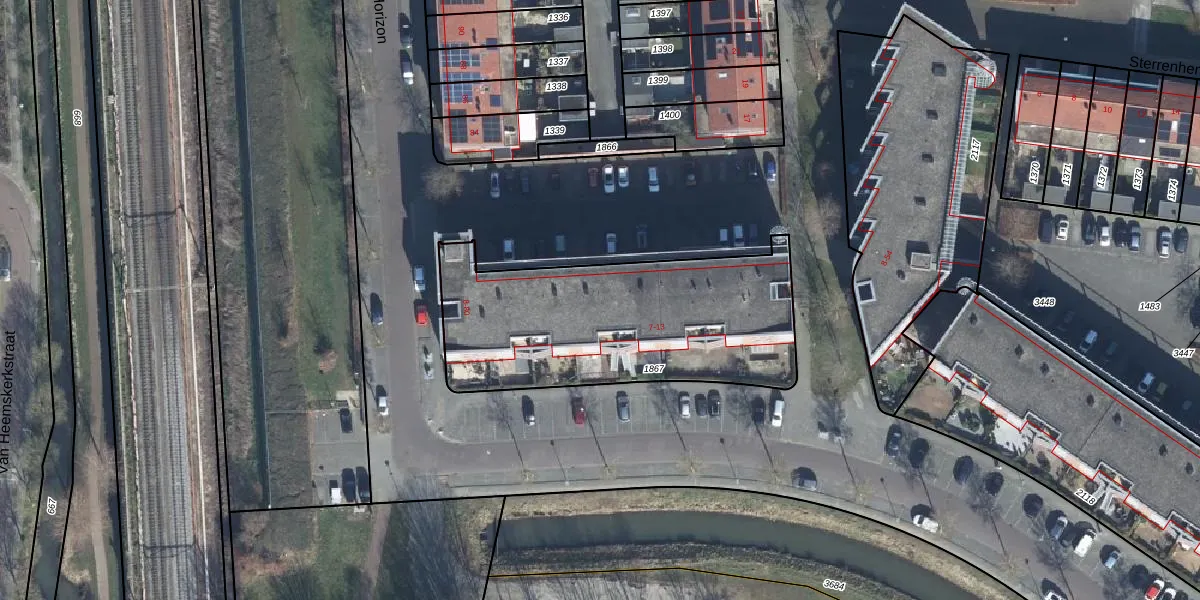 Het perceel waarop Horizon 32 staat heeft een oppervlakte van 1226 m². Dit is een zeer groot perceel. De perceeloppervlakte wordt geregistreerd door het Kadaster. Gedetailleerde informatie over de maten van dit perceel kunt u vinden in het rapport Kadastrale kaart met maatvoering van Horizon 32.