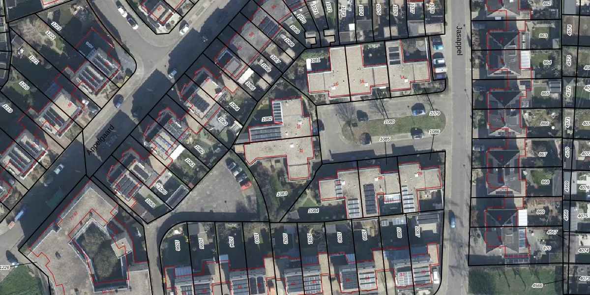 Het perceel waarop Jasappel 22 staat heeft een oppervlakte van 510 m². Dit is een groot perceel. De perceeloppervlakte wordt geregistreerd door het Kadaster. Gedetailleerde informatie over de maten van dit perceel kunt u vinden in het rapport Kadastrale kaart met maatvoering van Jasappel 22.