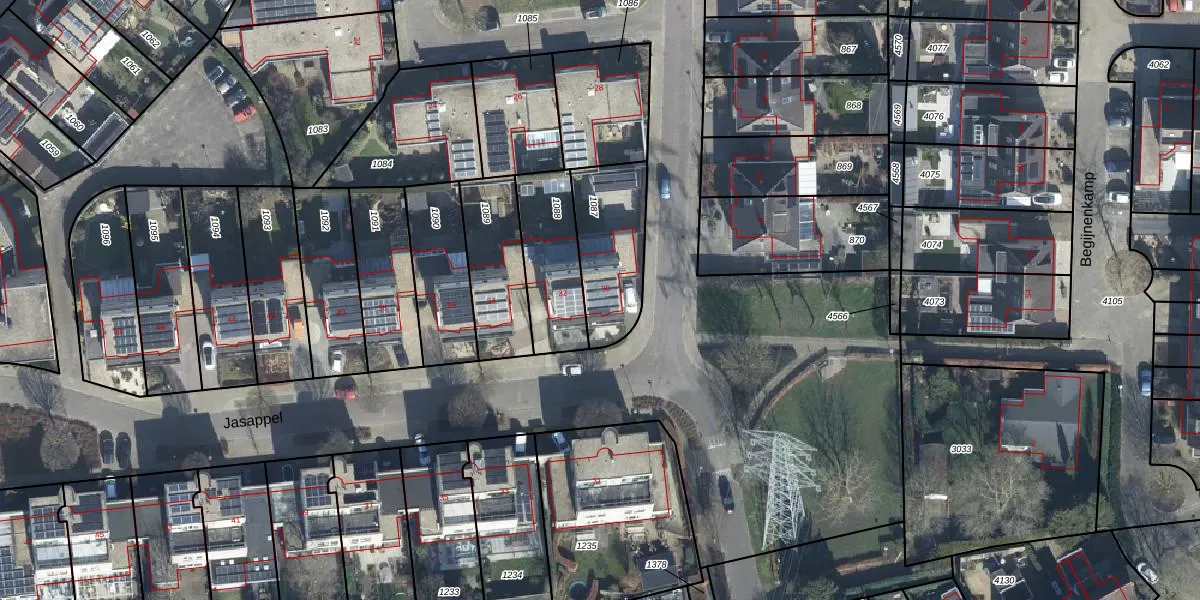 Gebruik de zoekbalk of klik op een perceel voor informatie over de adressen binnen dit perceel.