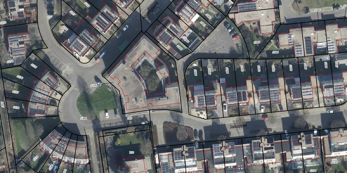 Het perceel waarop Jasappel 64 staat heeft een oppervlakte van 1375 m². Dit is een zeer groot perceel. De perceeloppervlakte wordt geregistreerd door het Kadaster. Gedetailleerde informatie over de maten van dit perceel kunt u vinden in het rapport Kadastrale kaart met maatvoering van Jasappel 64.