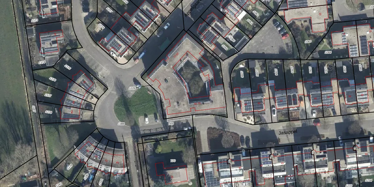 Het perceel waarop Jasappel 70 staat heeft een oppervlakte van 1375 m². Dit is een zeer groot perceel. De perceeloppervlakte wordt geregistreerd door het Kadaster. Gedetailleerde informatie over de maten van dit perceel kunt u vinden in het rapport Kadastrale kaart met maatvoering van Jasappel 70.