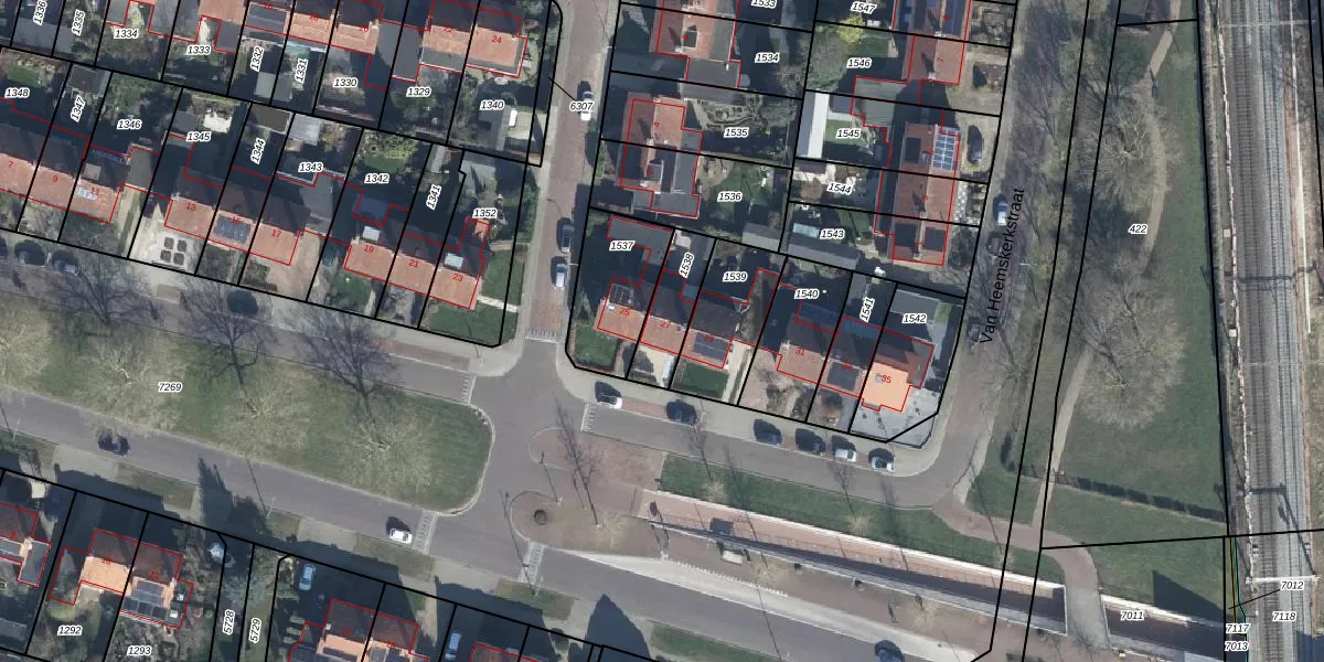 Gebruik de zoekbalk of klik op een perceel voor informatie over de adressen binnen dit perceel.