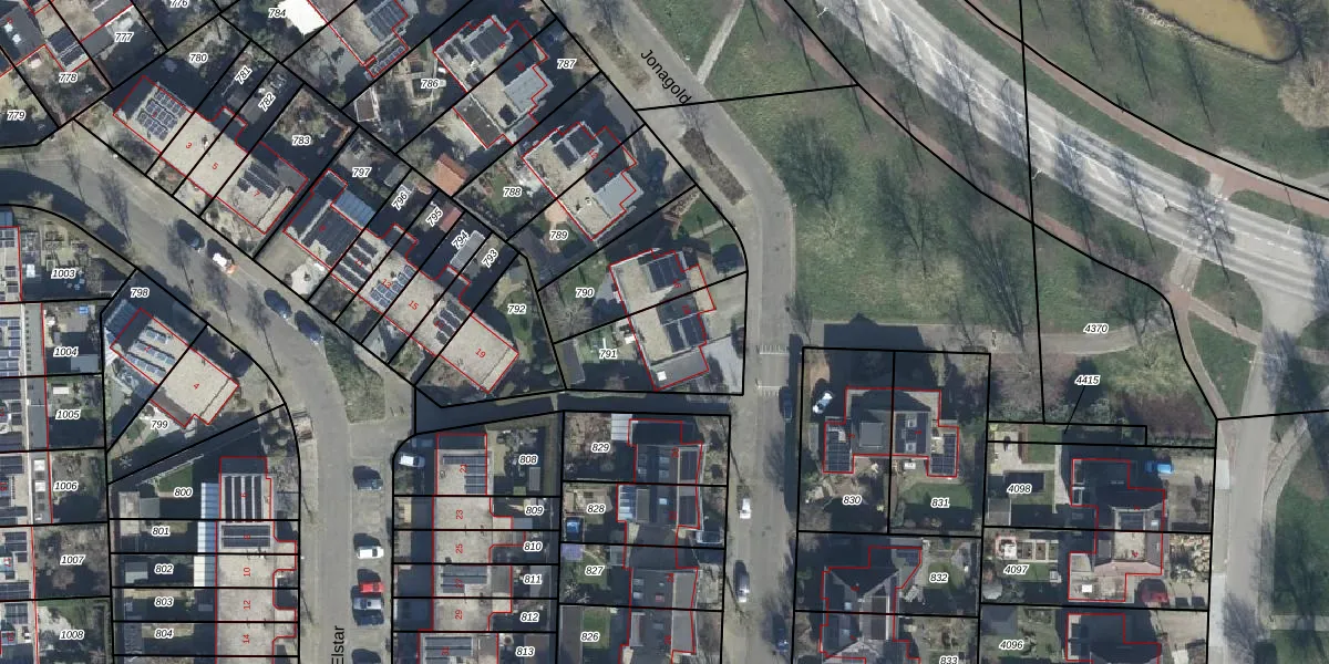 Het perceel waarop Jonagold 18 staat heeft een oppervlakte van 361 m². Dit is een groot perceel. De perceeloppervlakte wordt geregistreerd door het Kadaster. Gedetailleerde informatie over de maten van dit perceel kunt u vinden in het rapport Kadastrale kaart met maatvoering van Jonagold 18.