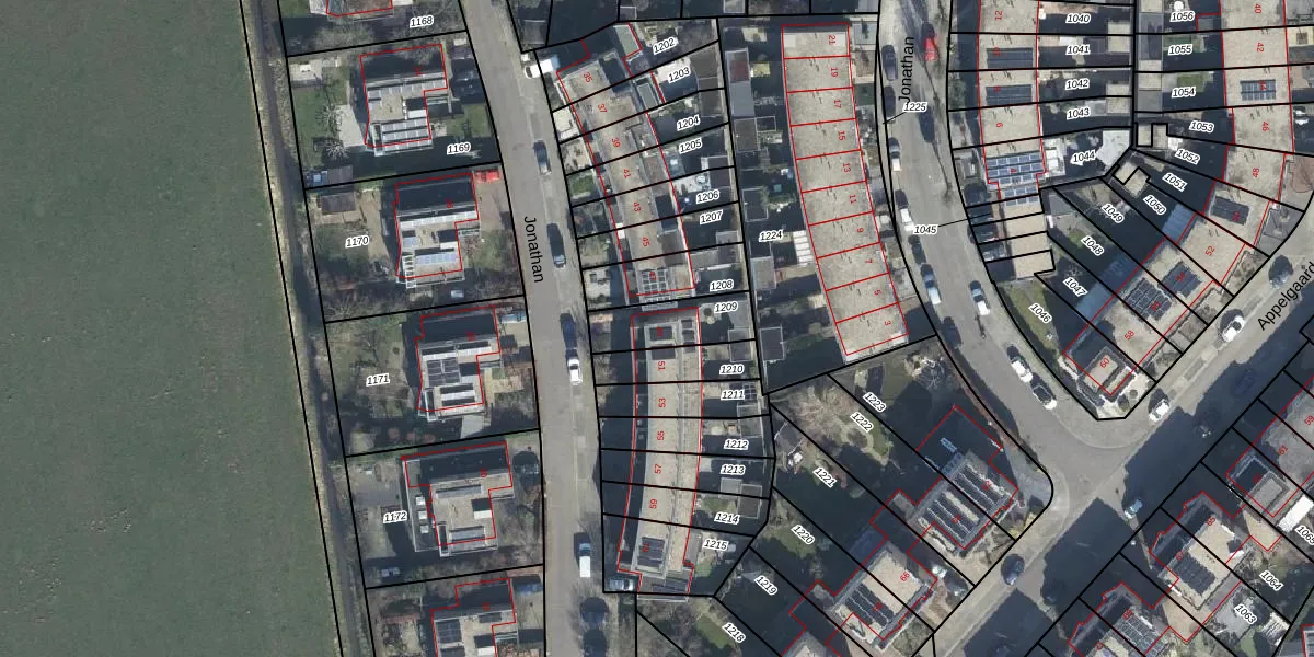 Het perceel waarop Jonathan 49 staat heeft een oppervlakte van 176 m². Dit is een middelgroot perceel. De perceeloppervlakte wordt geregistreerd door het Kadaster. Gedetailleerde informatie over de maten van dit perceel kunt u vinden in het rapport Kadastrale kaart met maatvoering van Jonathan 49.