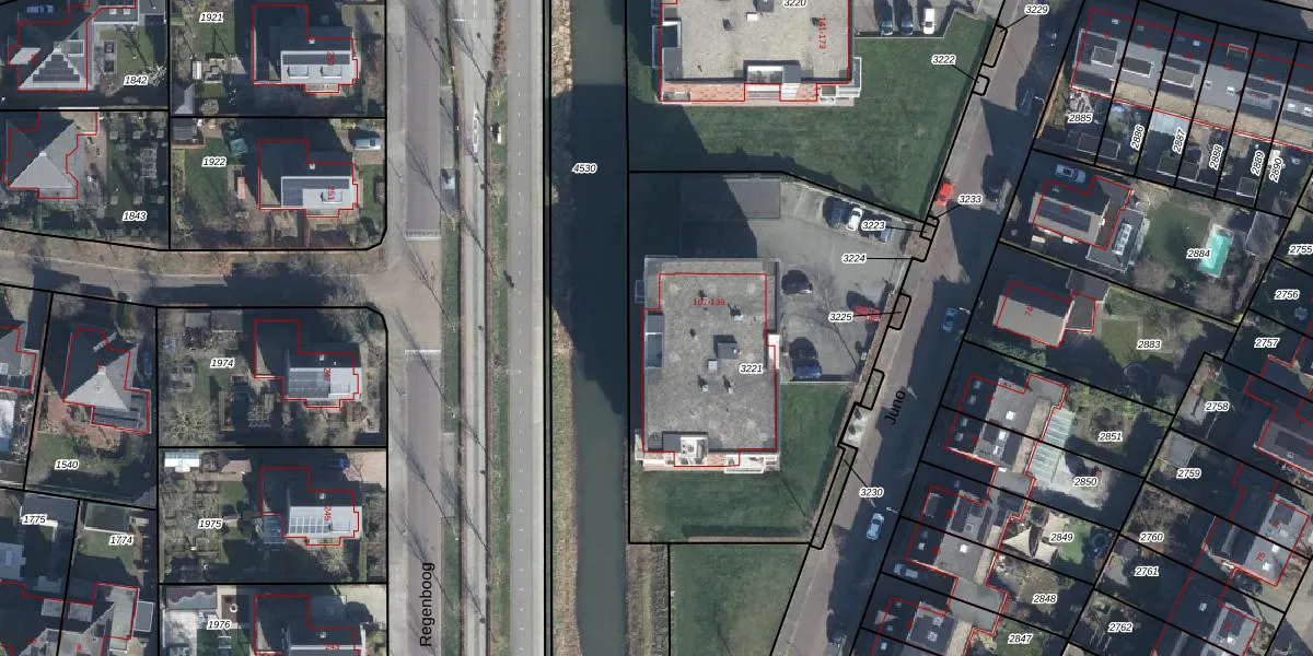 Het perceel waarop Juno 127 staat heeft een oppervlakte van 2045 m². Dit is een zeer groot perceel. De perceeloppervlakte wordt geregistreerd door het Kadaster. Gedetailleerde informatie over de maten van dit perceel kunt u vinden in het rapport Kadastrale kaart met maatvoering van Juno 127.