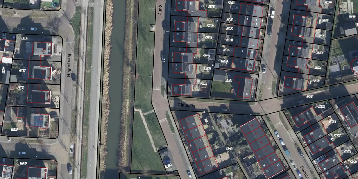 Het perceel waarop Juno 34 staat heeft een oppervlakte van 255 m². Dit is een middelgroot perceel. De perceeloppervlakte wordt geregistreerd door het Kadaster. Gedetailleerde informatie over de maten van dit perceel kunt u vinden in het rapport Kadastrale kaart met maatvoering van Juno 34.